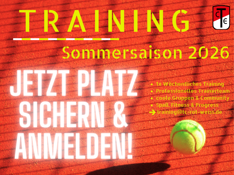 Die Sommersaison der Tennisschule (14 Einheiten, 1x wöchentliches Training) findet vom 28.04.2025 bis zum 28.09.2025 statt, ausgenommen sind die Pfingstferien (10.06.2025 – 20.06.2025) und die Sommerferien (01.08.2025 – 15.09.2025). An Feiertagen außerhalb der Ferien findet reguläres Training statt. Weiteren Infos findet ihr hier: Anmeldung Online