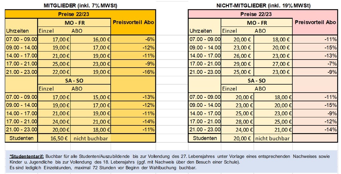 *(1x 60 Min. wöchentliches Training zzgl. Hallenplatzabo á 26 Einheiten, pausiert während der Schulferien)